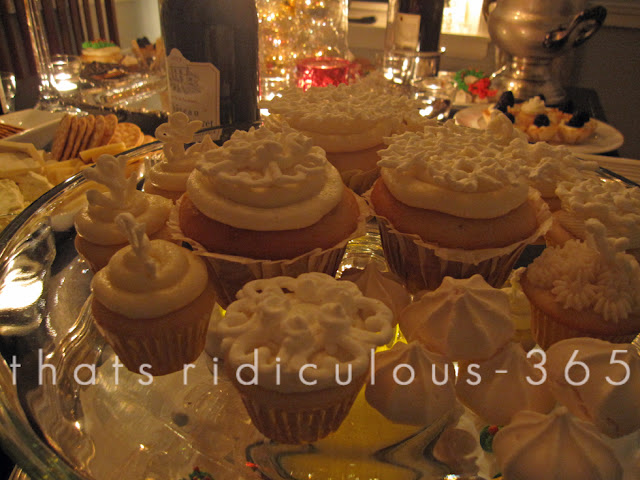 Went to my brother and sister in laws for a little pre-holiday toast last night. My sister in law put out a serious spread that included these beautiful cupcakes decorated by her mom. So pretty! Good times!