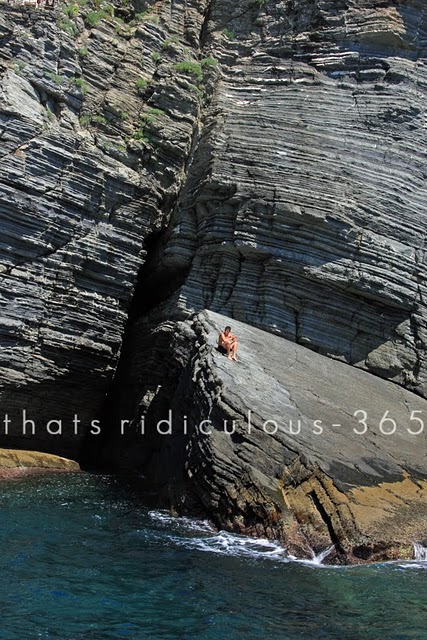 I love this adventurous boy on the rocks in Cinque Terra, Italy.