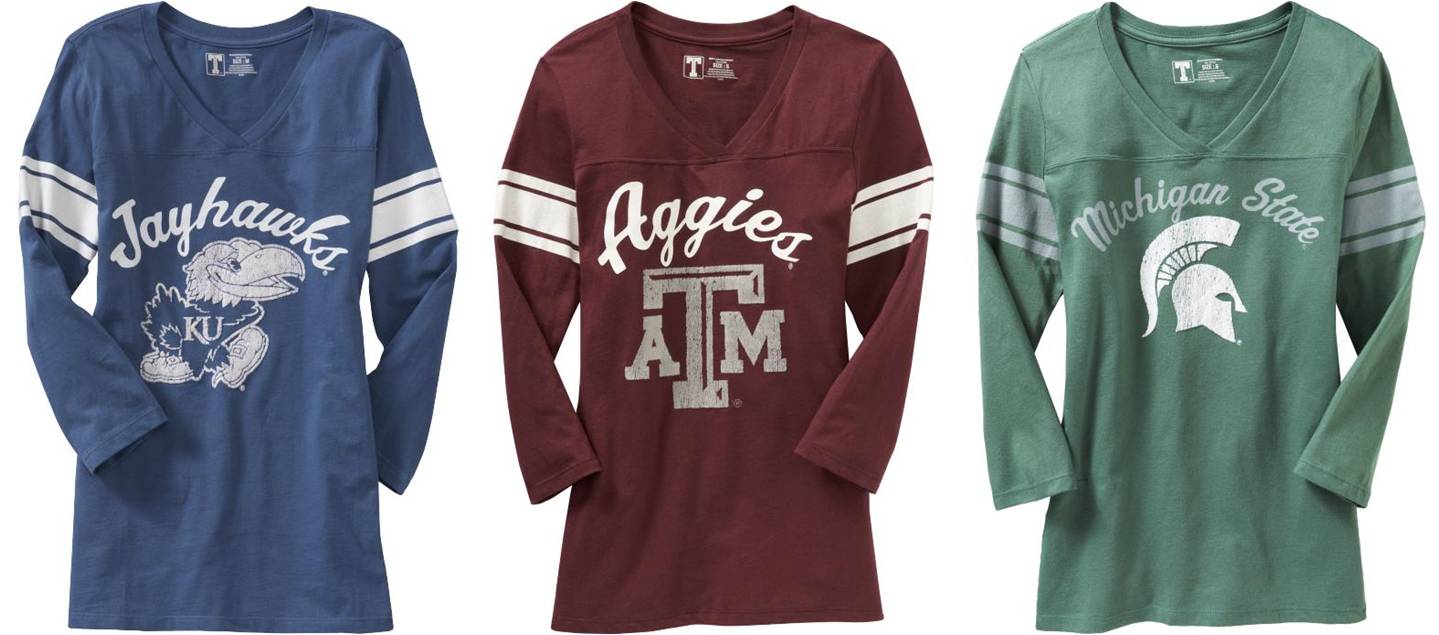 These shirts are from Old Navy! How cute are they?! Now, I went to none of the colleges above - they don't actually have one for my college. Booo. But I do have special allegiance to Texas A&M, as my daddy is an Aggie. Gig 'em!